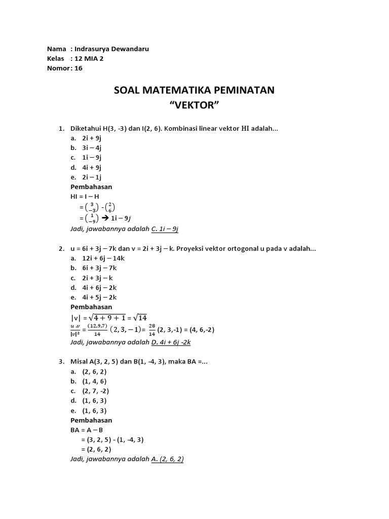 Contoh soal dan pembahasan fisika sma kelas 10 x materi vektor. Proyeksi orthogonal vektor a pada. Vektor mat minat kls 10 prediksi soal uas semester 2 bagian 1 bagian lain di smarrt plus ya duration.