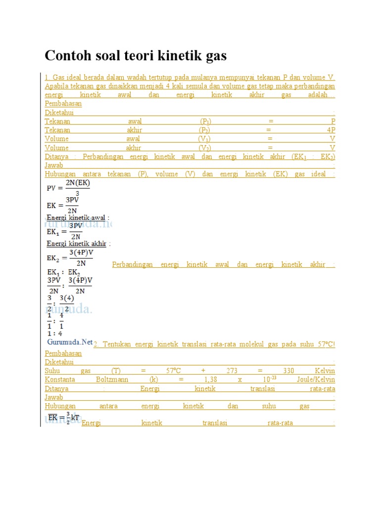 Contoh Soal Dan Pembahasan Tentang Teori Kinetik Gas ...