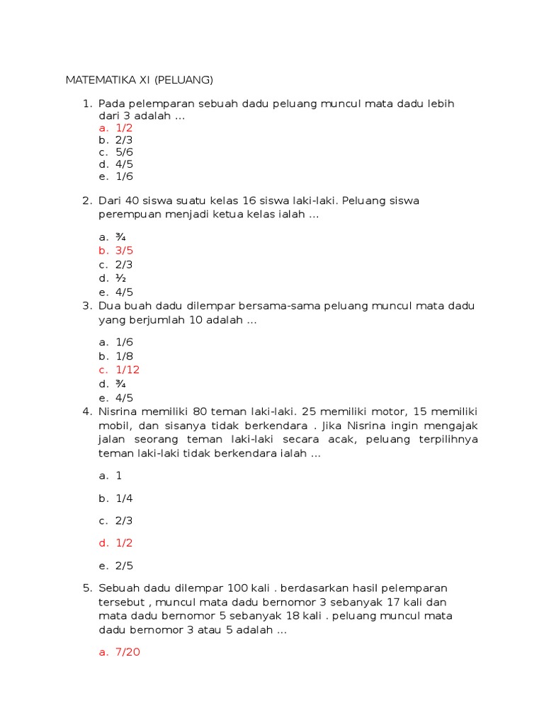 Contoh Soal Peluang Dan Jawabannya Kelas 9 - Berbagi ...